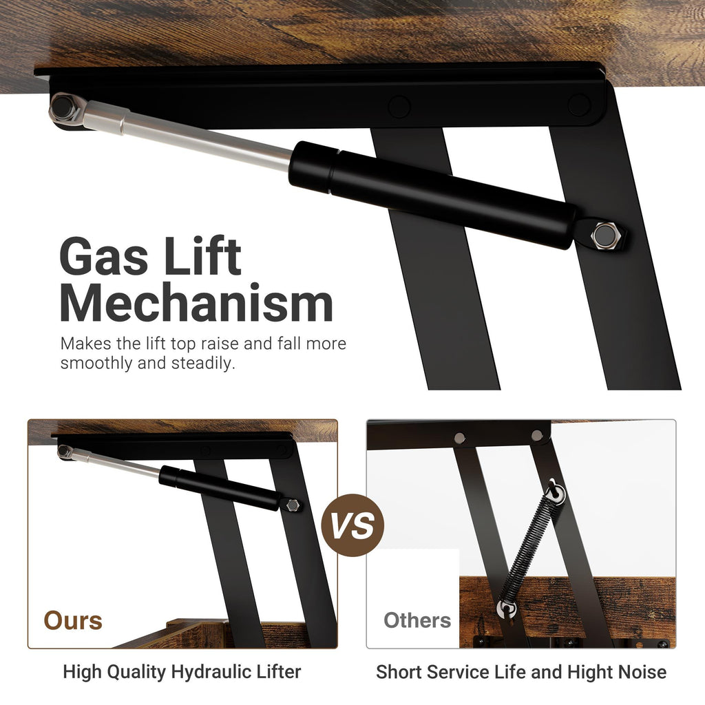 · [Split Lift-top Design / 3 Ways to Use] The split table top can be lifted in different directions to offer two independent-use spaces, allowing you and your family to use the table separately without interruption. The larger table top board can be turned 180 degrees freely for dining. So this coffee table is not only a functional table in the living room or reception room but also a home office desk or dining table.